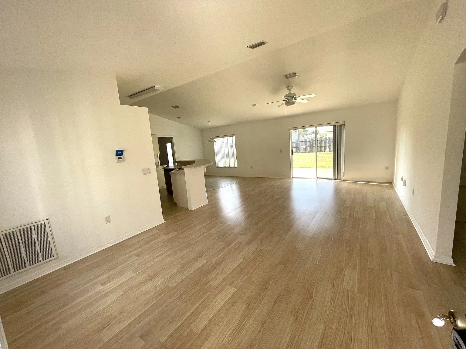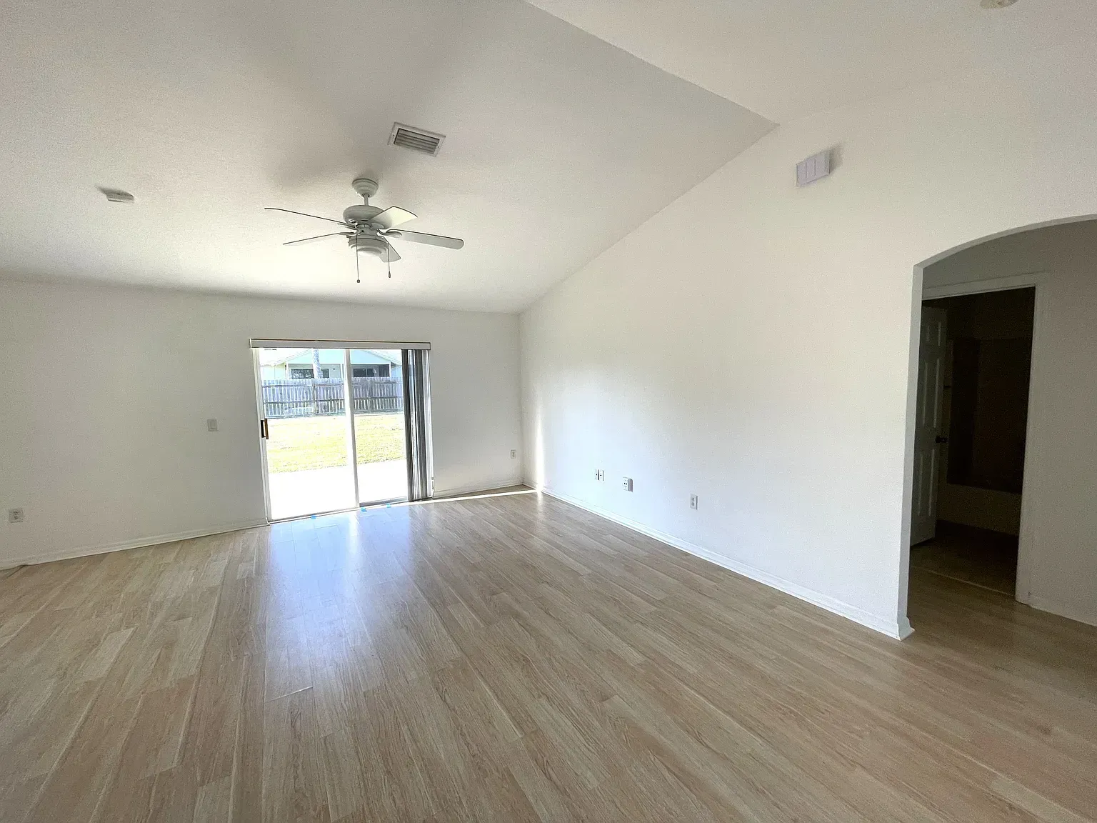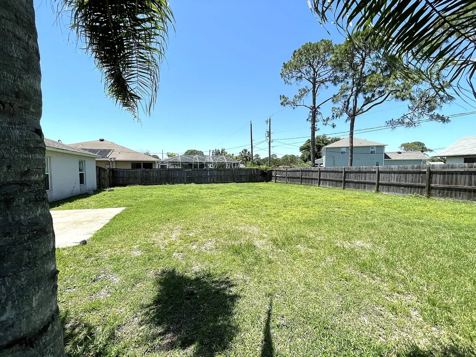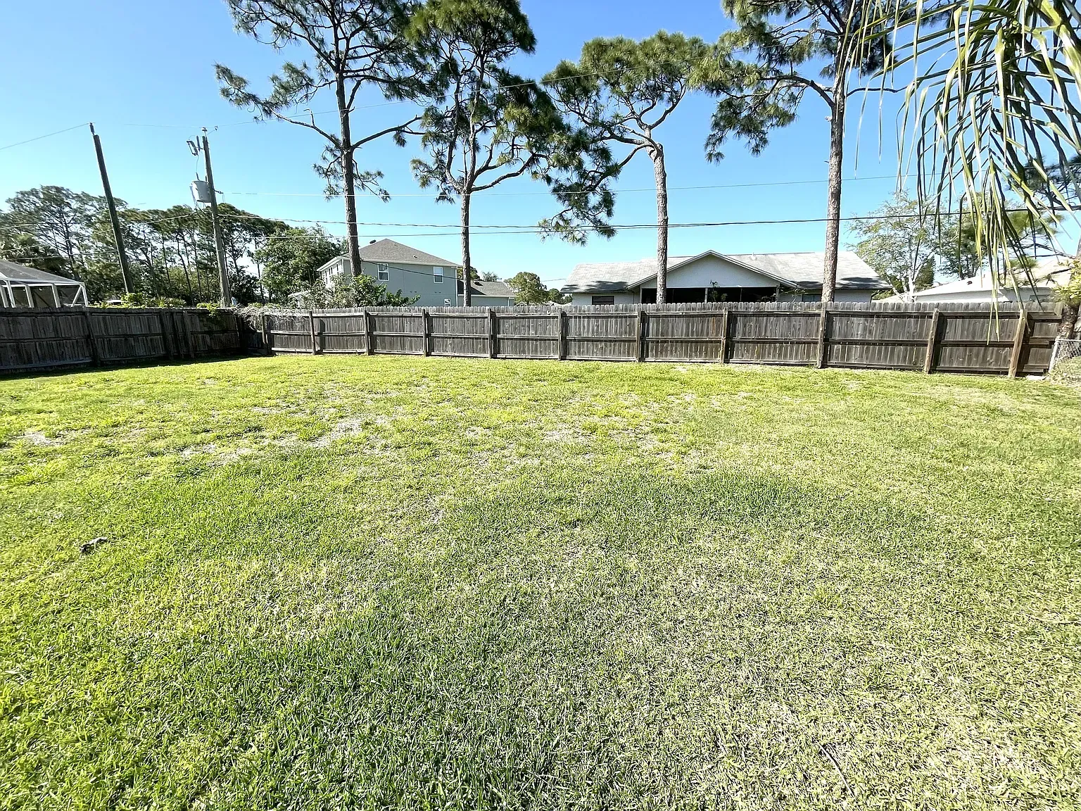 Stunning Nearly New 3BR/2BA, 2 Car Garage with city water. This home offers a blend of modern comfort and serene living. Step inside to discover an open split floor plan, accentuated by lots of natural light and high vaulted ceilings. Tiled floors in all main areas and Vinyl in bedrooms. No carpet. The kitchen features white cabinets, granite countertops, newer S.S. appliances, glass backsplash, and ample storage space. Oversized island with sleek lighting, breakfast bar, and pantry. The primary bedroom offers a peaceful retreat with large window & a walk-in closet. En-suite bathroom offers a glass-enclosed walk- in shower, dual vanities & granite tops. Two Secondary bedrooms are generously sized, with full guest bath featuring tiled shower/tub combos. Inside laundry room with washer and dryer. Two car garage. Enjoy outdoor living in a fenced in backyard oasis, overlooking the canal and Florida wild life. Screened trussed porch ideal for entertaining or unwinding after a long day. House is powered w/Solar Panels providing low cost electric bills. Convenient location, near schools, great shopping, restaurants and the beach. Easy access to major roadways only add to the charm of this home. Rent includes lawn care. Owner will consider Small pets. Available now.