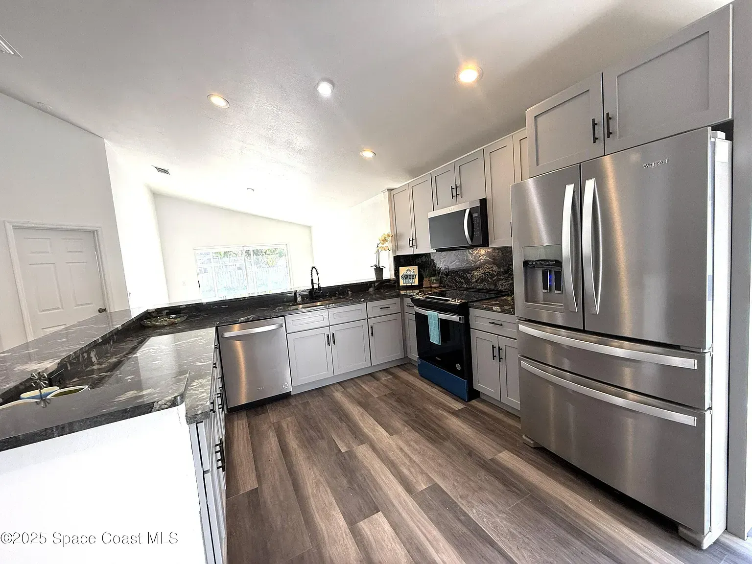 Stunning 3BR/2BA/2 Car garage in a serene location at Pebble creek.This home is updated throughout w/luxurious updates that you will love.Open floor plan w/high ceilings & large living areas boast a comfortable & inviting atmosphere.New vinyl plank flooring throughout adds a modern fresh look.All New fully equipped kitchen w/sleek soft-close cabinetry,elegant high grade granite tops,& S.S. appliances create an impressive & functional cooking space.Two breakfast bars.Primary bedroom & bath offer a spacious layout w/soaking tub, enclosed walk-in shower,new double vanity w/granite tops,new faucets,mirror & lighting.Two guest bedrooms & Updated guest bath w/new vanity. Family room slider leads to a screened-in enclosure, perfect for fun gatherings or unwind overlooking the canal. Two car Garage .Freshly painted interior & exterior. Excellent location, just mins to Patrick Space Force,great shopping,schools, parks,fine restaurants & the beach.Easy access to major roadways & airports.